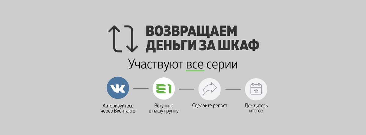 Купите шкаф-купе Е1 в интернет-магазине, фирменном салоне или салоне нашего партнера и примите участие в акции!